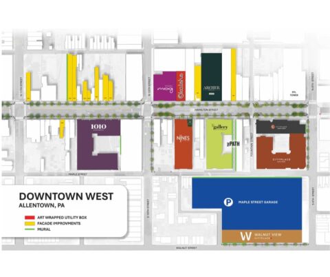 This development addresses community needs by creating housing and supporting local businesses through a façade-renovation program, along with a substantial investment in public art, landscaping, and improved streetscapes. Collaborating with Cedar Crest College Art Therapy students, City Center Group wrapped electrical boxes throughout Downtown West and partnered with Allentown Mural Arts to bring 30,000 square feet of murals to the area. The Path, a pedestrian walkway, features 4,000 square feet of murals and a “Before I Die” wall open for community enjoyment.