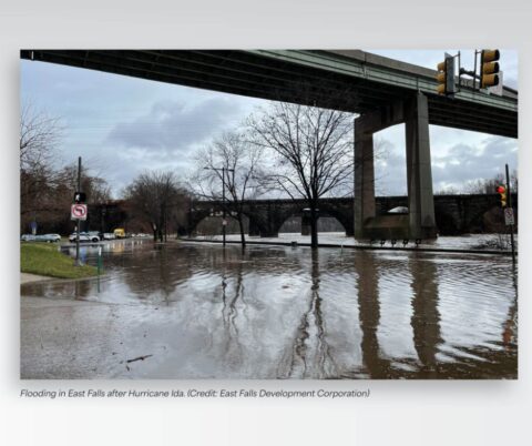 East Falls and Manayunk, two lively Philadelphia neighborhoods along the Schuylkill River, are known for their rich history, bustling business districts, and picturesque riverside views. However, their location near the river makes them susceptible to flooding. Severe storms are increasingly triggering destructive floods threatening public health and safety, infrastructure, and property. In response to devastation from Hurricane Ida in 2021, the East Falls Development Corporation and the Manayunk Development Corporation teamed up with AKRF to create a flood mitigation study. This study is a toolkit of resiliency strategies to proactively prepare for future storms, safeguard the neighborhoods, and maintain the vitality of these cherished communities.
