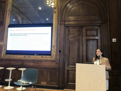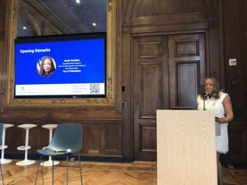 The day’s program kicked off with opening remarks from Philadelphia City Councilmember Jamie Gauthier, who discussed the importance of climate investment in her council district in West Philadelphia and citywide. Councilmember Gauthier highlighted the legacy of economic disinvestment and environmental damage in Philadelphia— and the opportunity & responsibility the IRA represents for reversing that legacy.